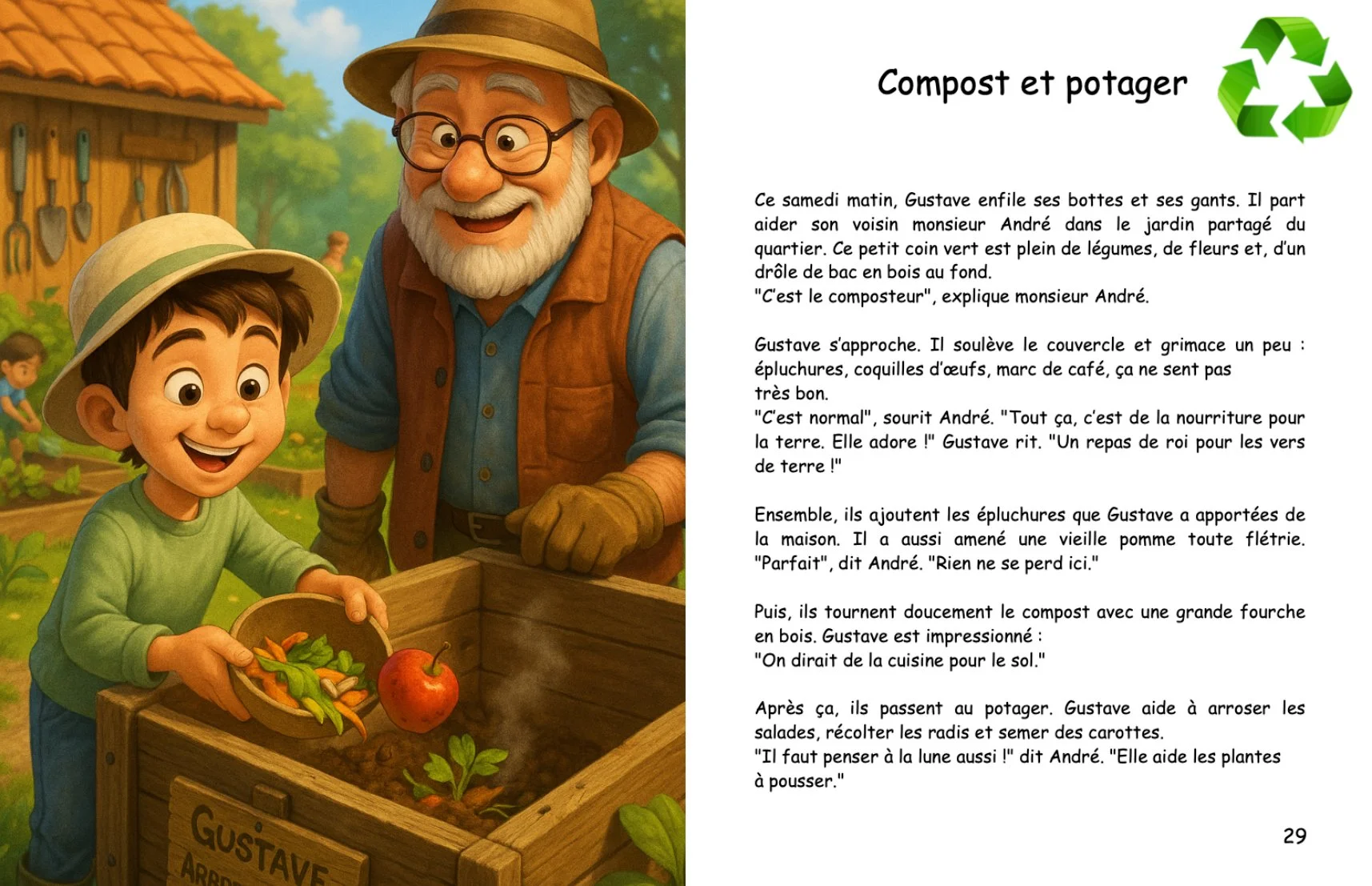 Chaque geste compte, et Gustave le prouve avec humour, curiosité et bonne humeur. Des histoires accessibles et réalistes. Des idées concrètes à appliquer à la maison ou à l’école.