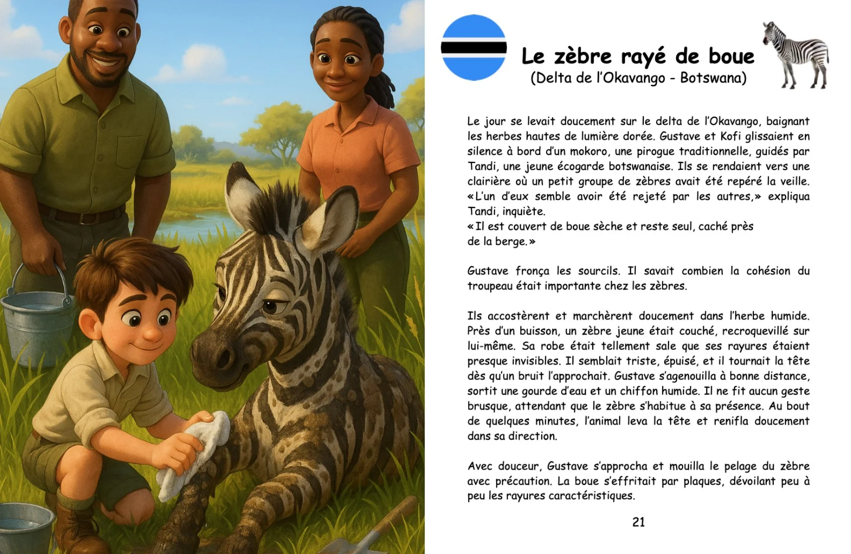 Le jeune aventurier embarque pour un fabuleux voyage à travers les grandes plaines africaines. Du delta de l’Okavango aux terres rouges du Kalahari, des marais paisibles de la Zambie aux forêts tropicales d’Ouganda, Gustave observe, apprend et prend soin des animaux sauvages qu’il croise sur sa route.
