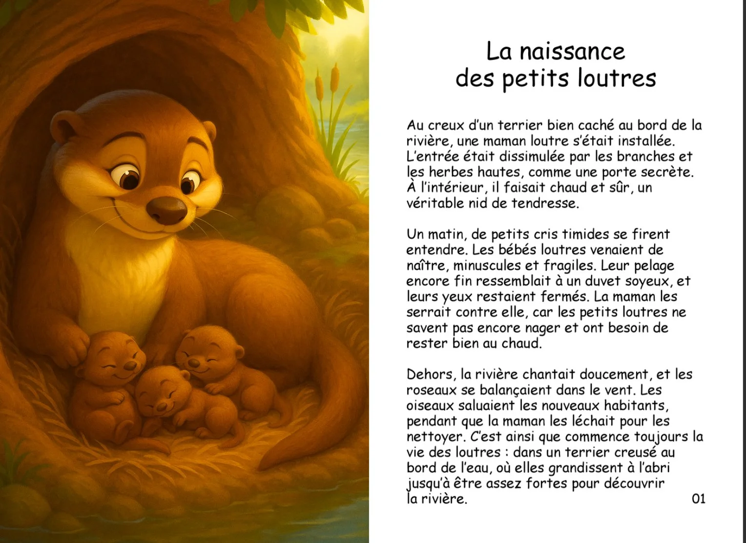 Au cœur de la rivière, la famille loutre vit de tendres et joyeuses aventures au fil de l’eau. Entre jeux, découvertes et premières explorations, les petits loutres grandissent entourés de papa et maman, dans un monde rempli de douceur et de curiosité.