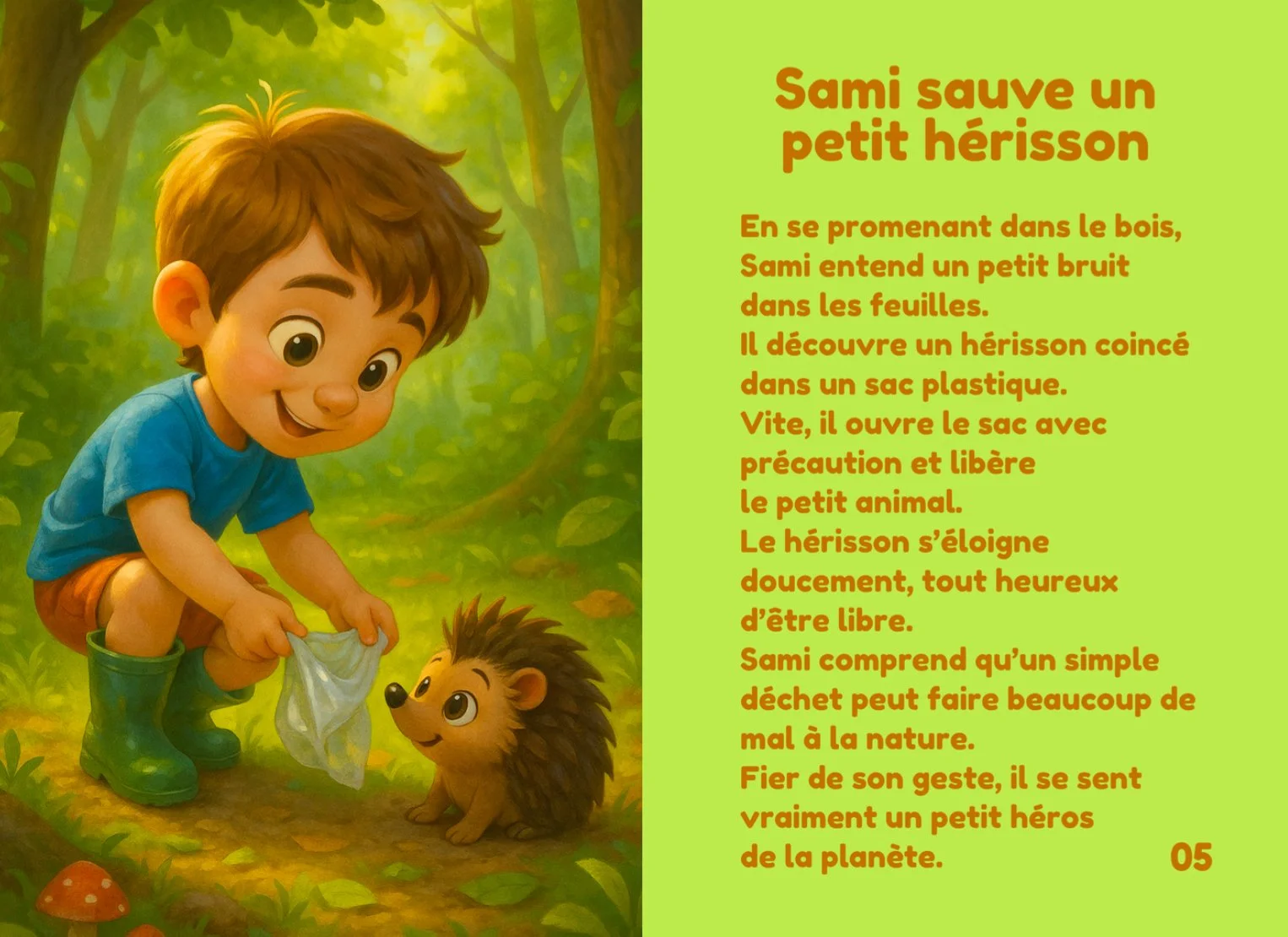 Page après page, découvre des enfants qui protègent la nature avec de simples gestes du quotidien !